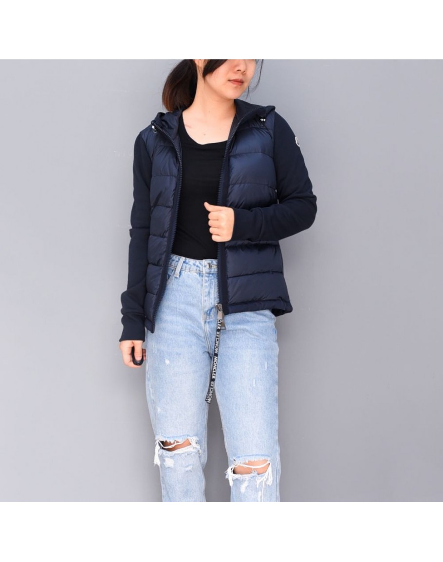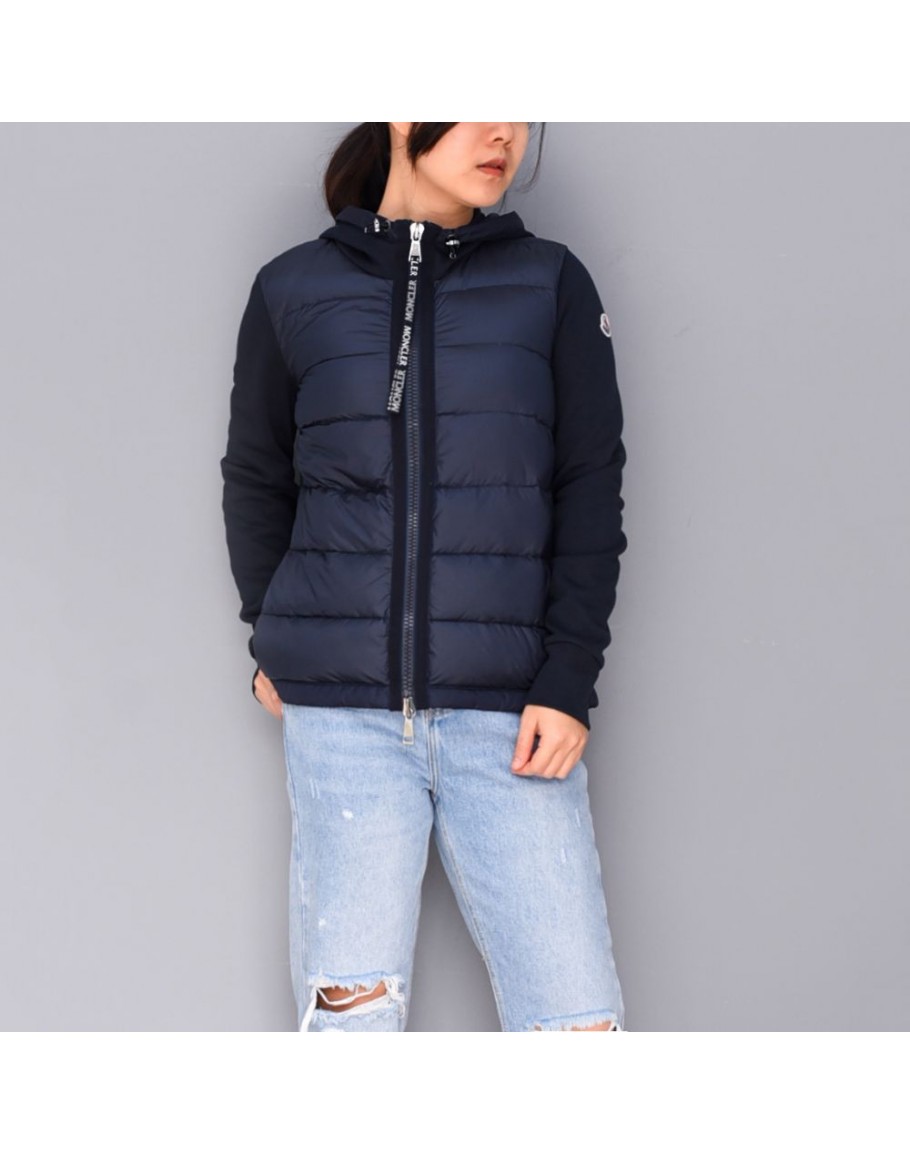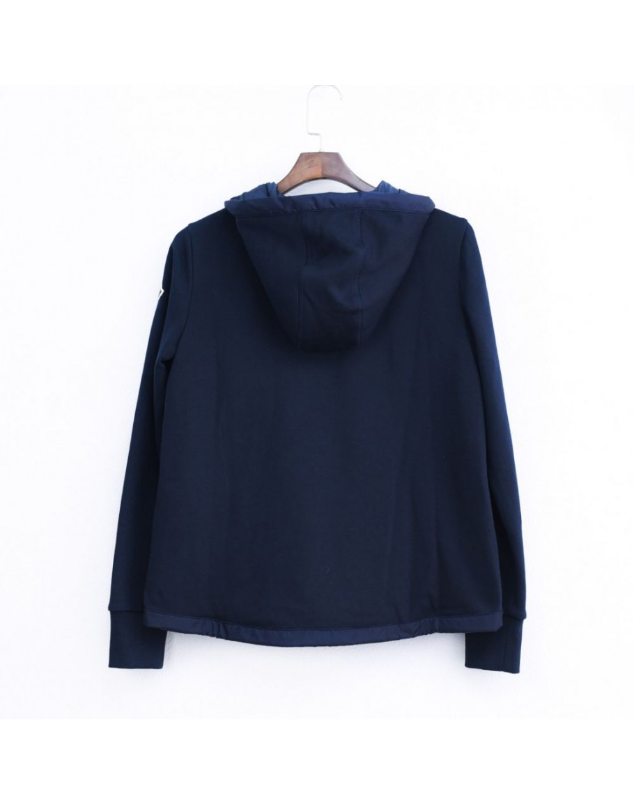 Moncler Maglia 寬格拼接連帽拉鍊外套 深藍