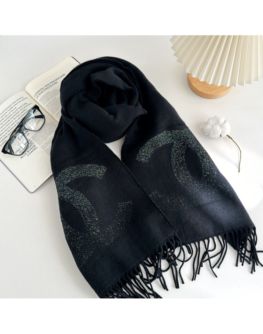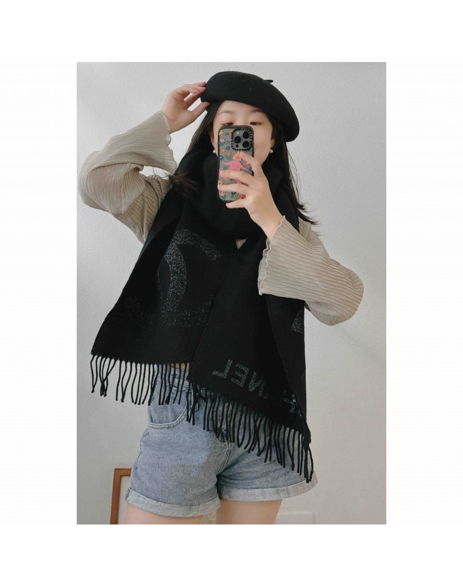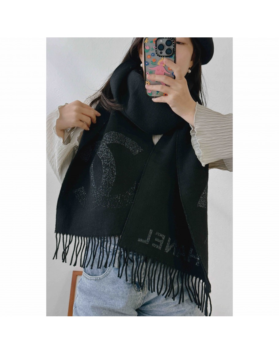 AAA318 大Ċ金蔥圍巾 黑